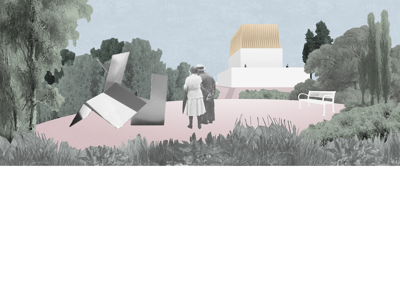 In the Edifício Carneiro extention, which will host part of the artist Charters de Almeida’s oeuvre, the proposal extends the exhibition program into the sloped terrain. Its Garden will accommodate works of the artist under a grove of pines, oaks, corks, ash trees and wild olive trees.