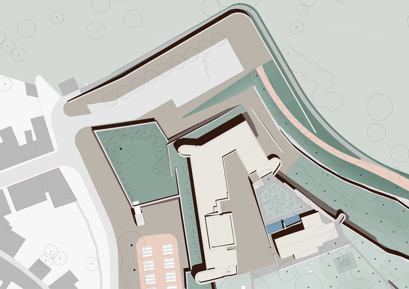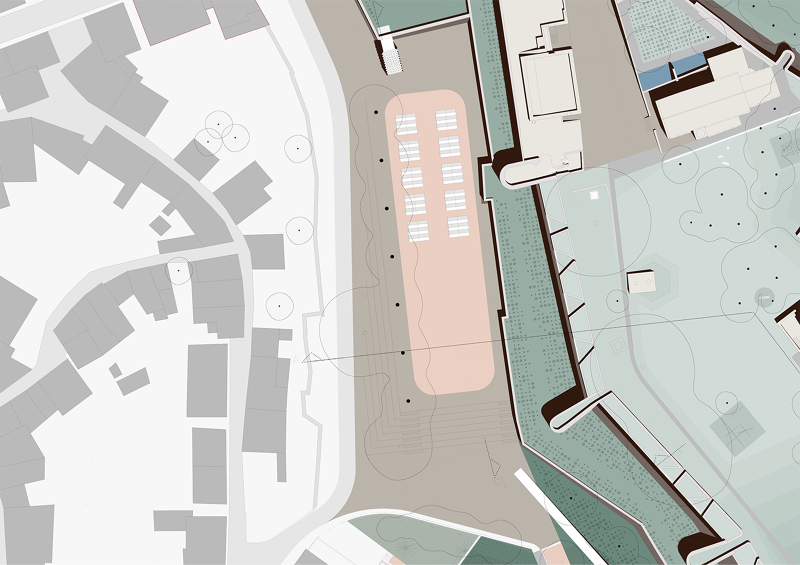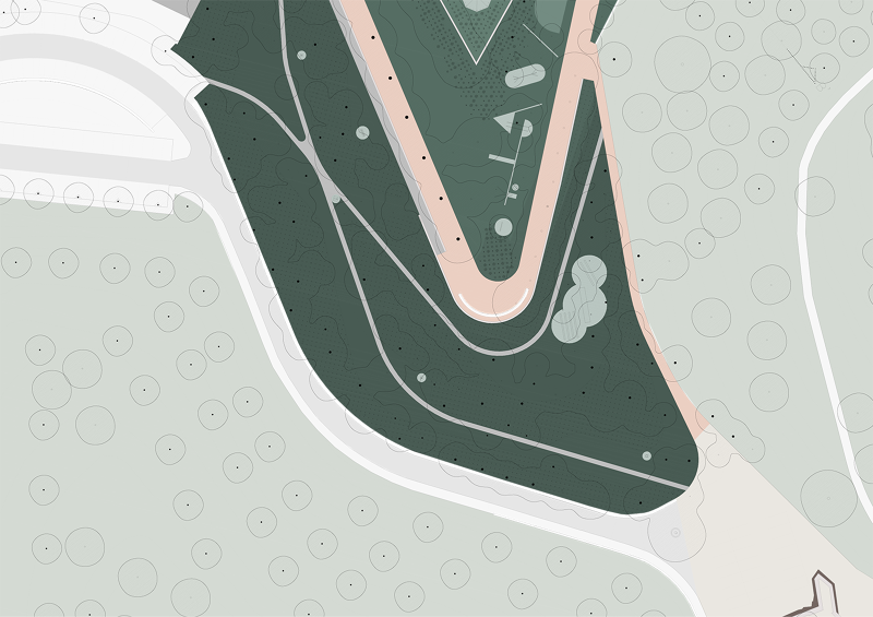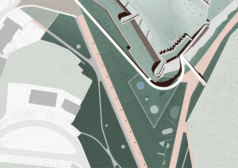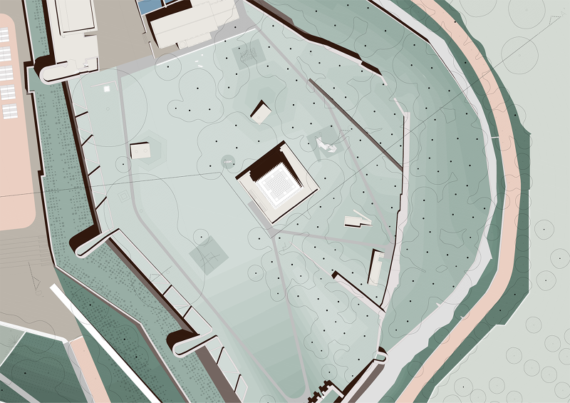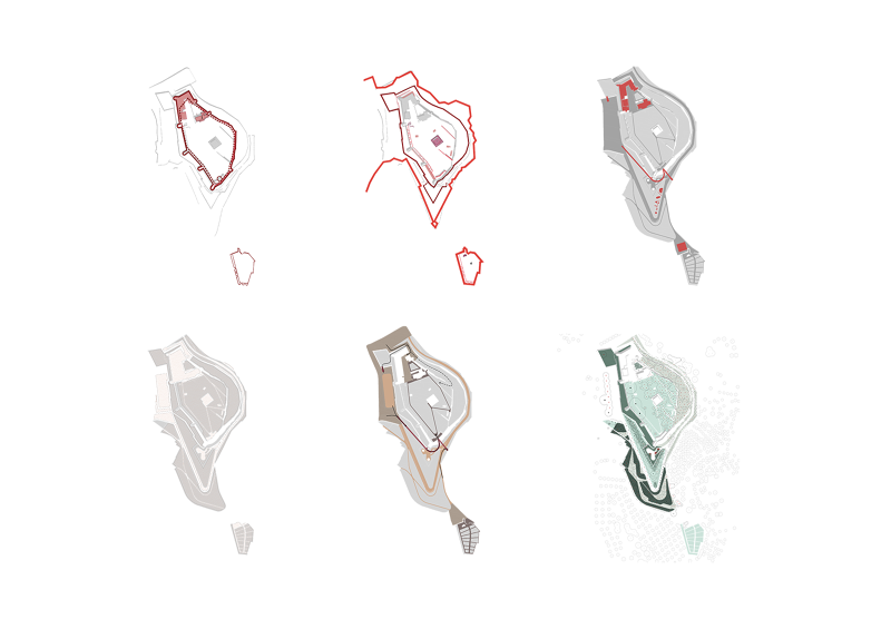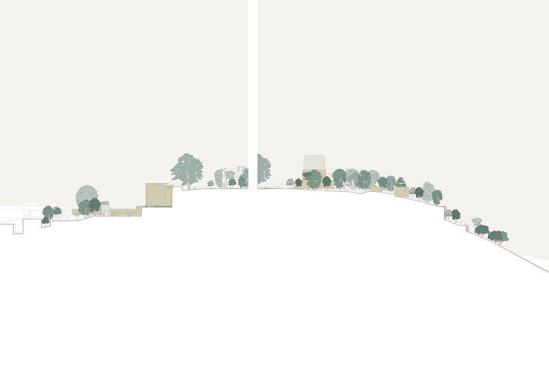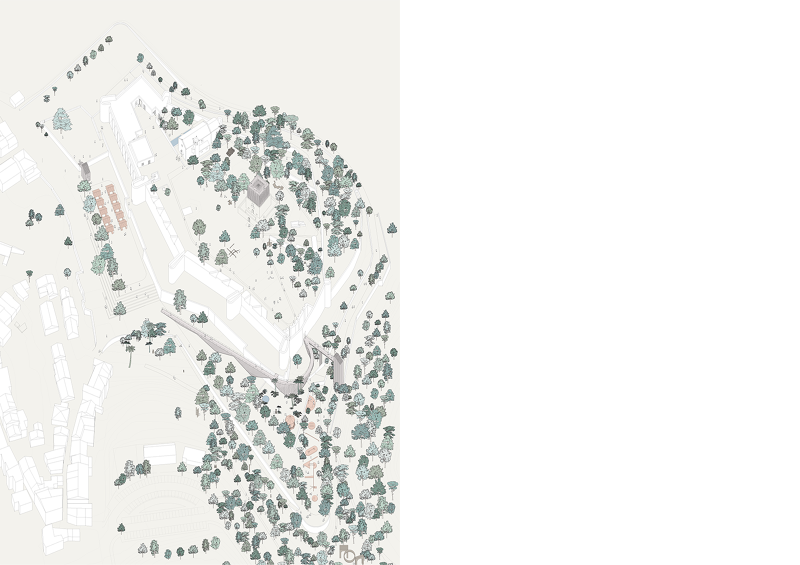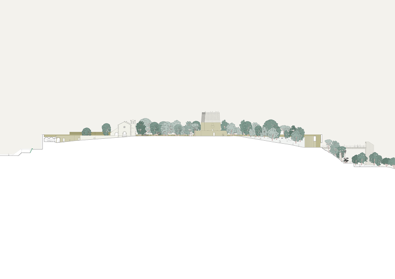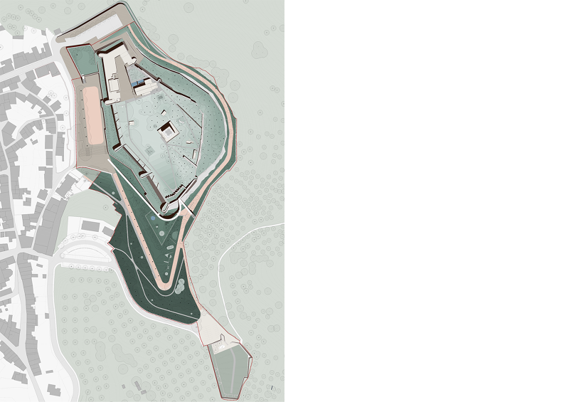 The proposal aspires to integrate the Castle with local and national culture through the conversion of the hill into one of the hubs of the Iberian Museum of Archaeology and Art of Abrantes (MIAA). The new structure - the Art and Archaeology Park (PAAC) - reclaims a place in the quotidian of Abrantes’ citizens through the development of a diversified program, directly related to the city and which supports social and cultural activities. The scheme re-establishes the connection to the city through the clarification of the accessibility to the Castle, starting with a new large square that acts as a link between them. PAAC elaborates an open program, articulated by new paths and routes which provide a new way of looking and living the Castle and its defensive structures.