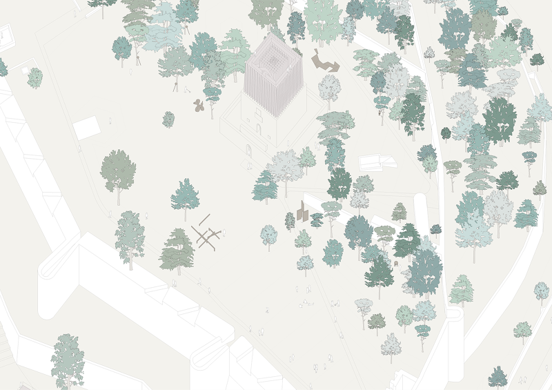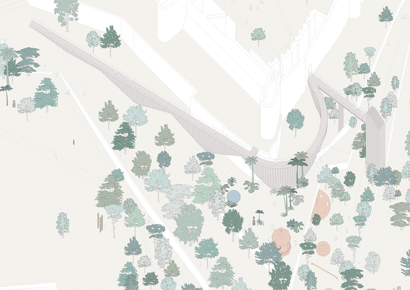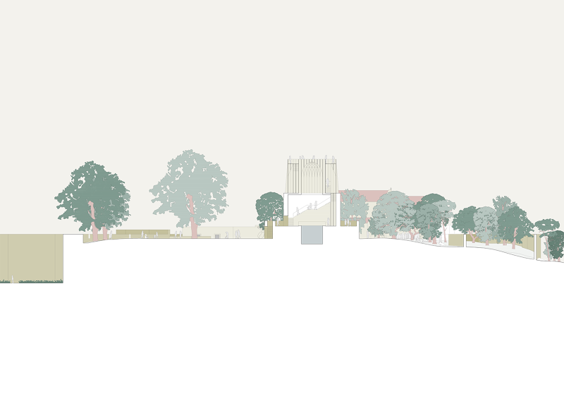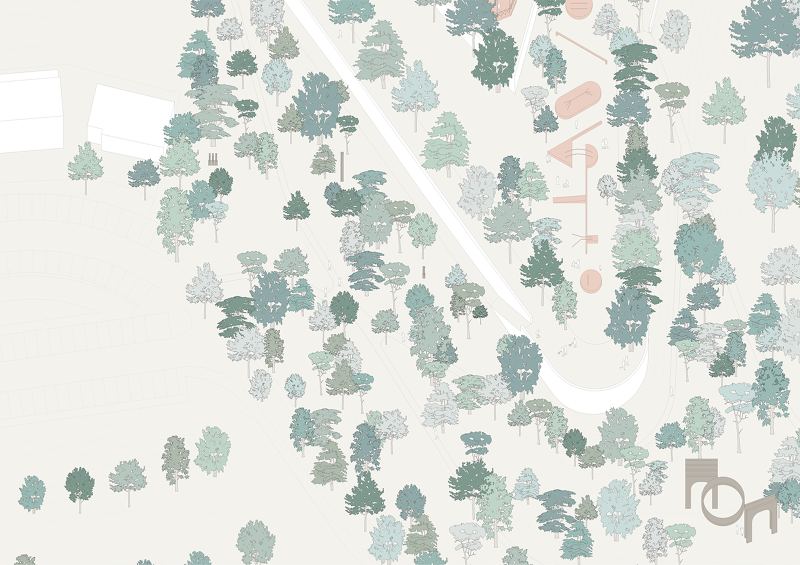 The Castle ground is made up of layers of rock. The proposed terrain is modelled to gradually reveal the barrack and storehouses. The precinct’s soil profile is ideal for the planting of arboreal vegetation and thus a forest of pine and oak trees is proposed.