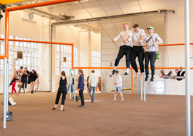 One Two Three Swing! is both an aesthetic and a conceptual installation engaging with the power of play and the collaborative entities people can create together. The shared experience is embedded within us and may engender new collaborative activities and movements as we go through life. SUPERFLEX see the collective force as a positive energy, potentially capable of changing the course of our lives and thus our future. The work may also trigger reflections on fundamental questions such as democracy, influence, and common citizenship – in that sense, SUPERFLEX’ swings are more than just play.
