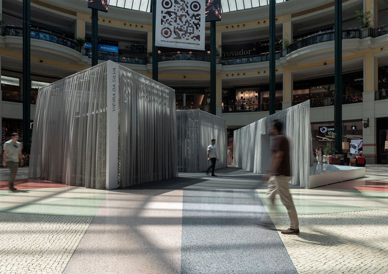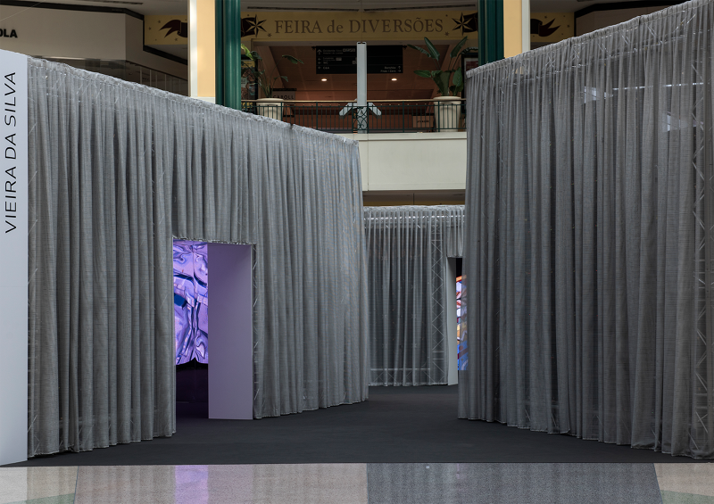 The resulting volumes create three distinct spaces: a “corridor”, a “room” of more ample proportions, and a “stack”. Each seek to simulate a unique experience of forced perspective, as suggested by the paintings of Vieira da Silva. The specificity of each space lends itself to hosting diverse immersive experiences into the artist’s universe which were subsequently occupied by Oskar & Gaspar and Rodrigo Leão.