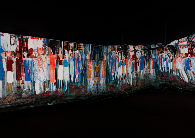 The exhibition Vieira da Silva is a unique and sensorial immersive experience which connects the artwork with moving image and sound. The exhibition explores the oeuvre of Vieira da Silva and offers dynamic, informative and visually impactful experience by inviting visitors to become immerses in the artist’s painting. The digital content was created by Oskar & Gaspar, a Portuguese collective of digital and visual artists that specialise in video-mapping, 3D projections and motion graphics. The soundtrack to the experience was created by the renowned Portuguese musician and composer Rodrigo Leão.