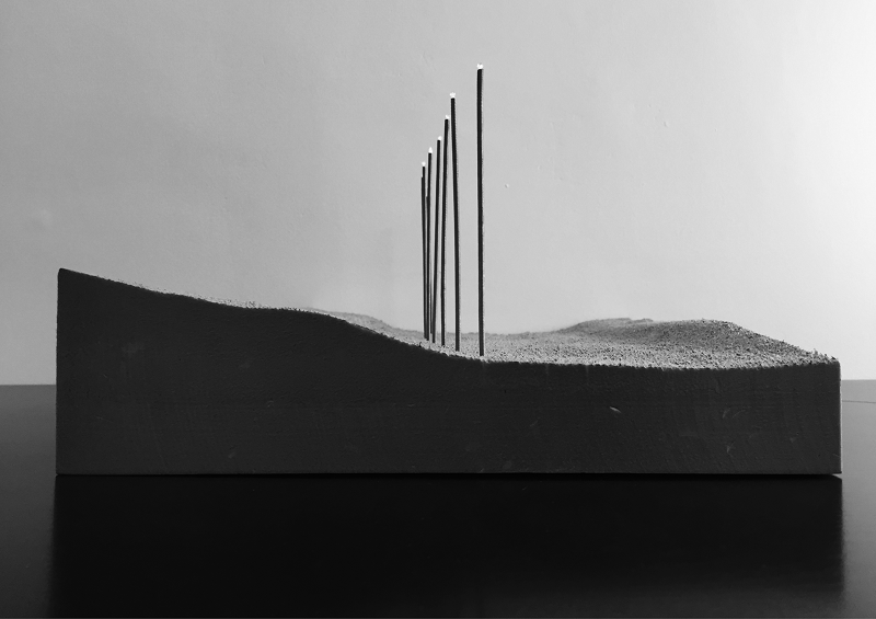Thorsø Notations has a presence in both day and nighttime, from close and afar: during the day the poles’ silent movement mirrors that of the grass or reeds, gently projecting its animated shadows in resonance with the trees. This view is accentuated further in proximity when walking the along the path. At night, the work manifests in its sparest form, a mimesis of the fuller world in a dark surround: swaying in concert with the wind patterns, each white light on top of the poles fracture the surface plane of the night sky with their individual curves and arcs. This choreography of light can be seen from further afield as an intriguing wind calendar.