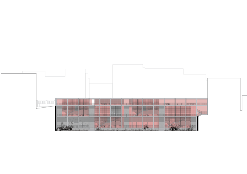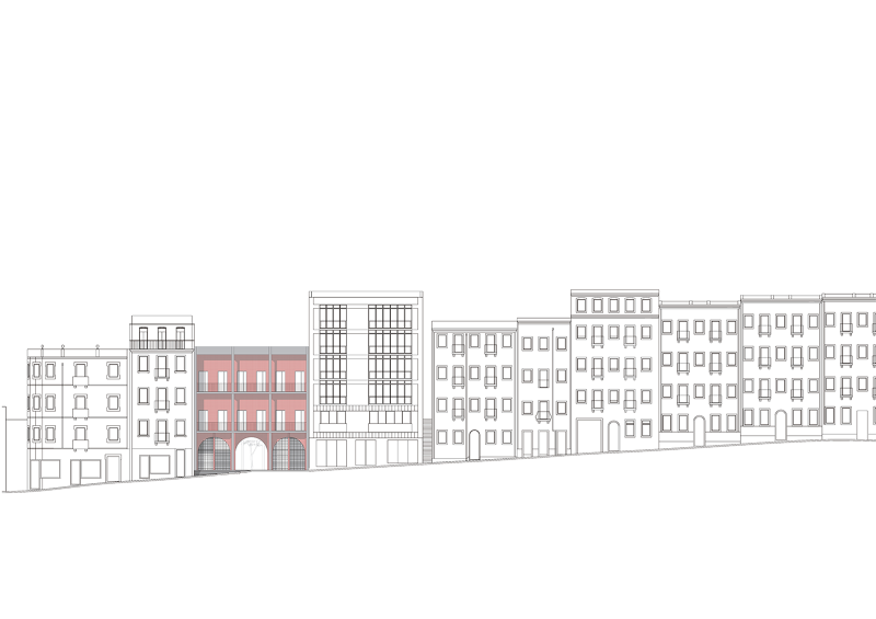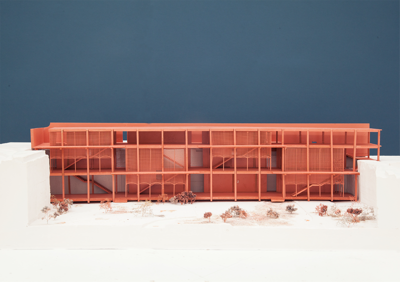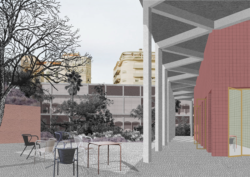 Programmatically, the proposal seeks to guarantee polyvalence and reversibility of uses in order to provide a long-lasting platform for the city and its numerous collectives and local associations, which due to a difficult economic and a complex political situation are neither granted space nor the opportunity to act. The structures provide a kind of infrastructure for those very activities. The Gate and the courtyard with the Kiosk extend the urban into the interior of the plot; the Wall defines a border and an entrance to a wide clearing in the neighbourhood. They provide the inner space of the project with a typological ambiguity; nor just a court or a patio, nor truly a park or a garden; a space for all the probabilities, an unexpected landscape.
